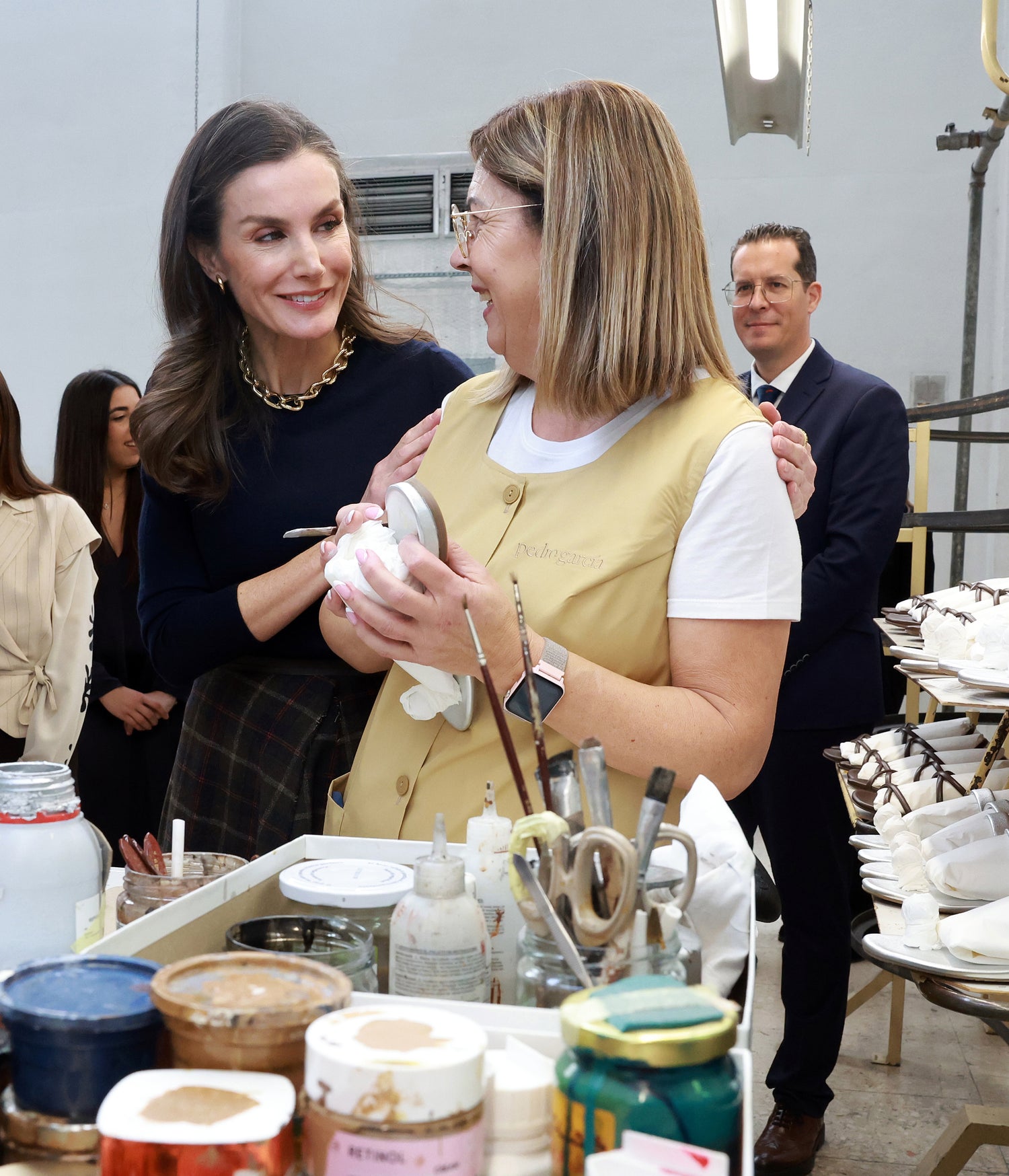 Her Majesty Queen Letizia visited the Pedro García shoe factory in Elda for an event that highlights the brand's heritage and artisanal excellence. Founded in 1925, the company represents the past and present of Alicante's foot wear industry, a global benchmark for the stamp of "Made in Spain".